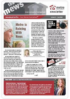 Hot off the press our June quarter newsletter has arrived. In this issue Leah introduces you to Metro Property Sales, our two new websites (yes two of them!), there's tips on photography (in order to lease your property quicker), advice on Depreciation and a competition to win a $250 Coles/Myer gift card by 'liking' our MetroPM facebook page during this month of July.